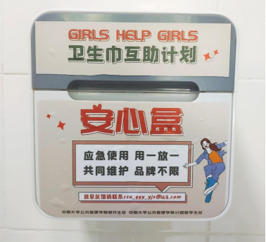 本次活动的开展不仅缓解了女性在生理期突然造访时的无助与尴尬问题,更营造了充满朝气、团结奋进、友爱互助的学生群体氛围,在 “取一放一”及“Girls help girls”的基础上,“安心盒”卫生巾互助计划为女性们提供了建立友好互助关系的契机,引导广大女性正确认识生理期,学会关心和爱护自己的身体。