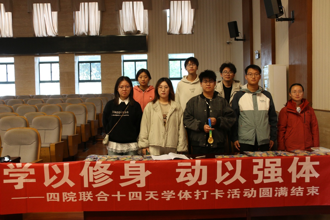 颁奖环节结束后,在场同学合影留念。本次活动虽已落幕,但十四天的坚持见证了习惯的力量与团队的意义,它不仅是一次短期的挑战,更是一次对自律精神和协作意识的培育生动培育。期待这份坚持能延续至日常,助力每一位参与者在未来的道路上步履不停、行稳致远。