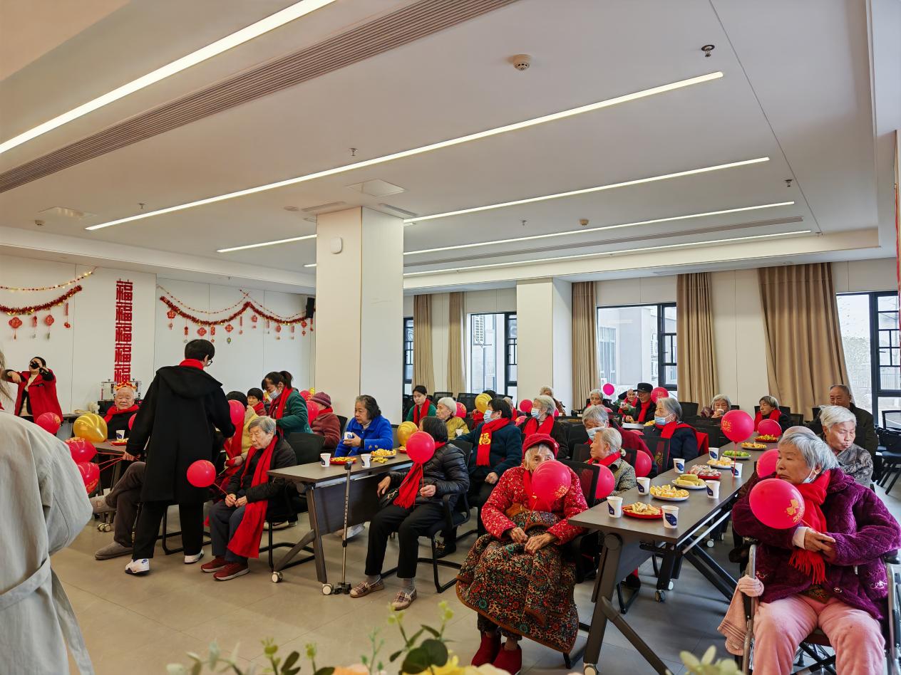 活动在热情洋溢的开场致辞中拉开序幕。随后,全场齐声合唱《好运来》,老人们随着音乐轻轻挥手,歌声中洋溢着对美好生活的向往与祝福。接下来的“零食套套乐”游戏环节笑声不断,老人们手持轻质套圈,专注投掷,每有收获便引来阵阵掌声与欢呼。