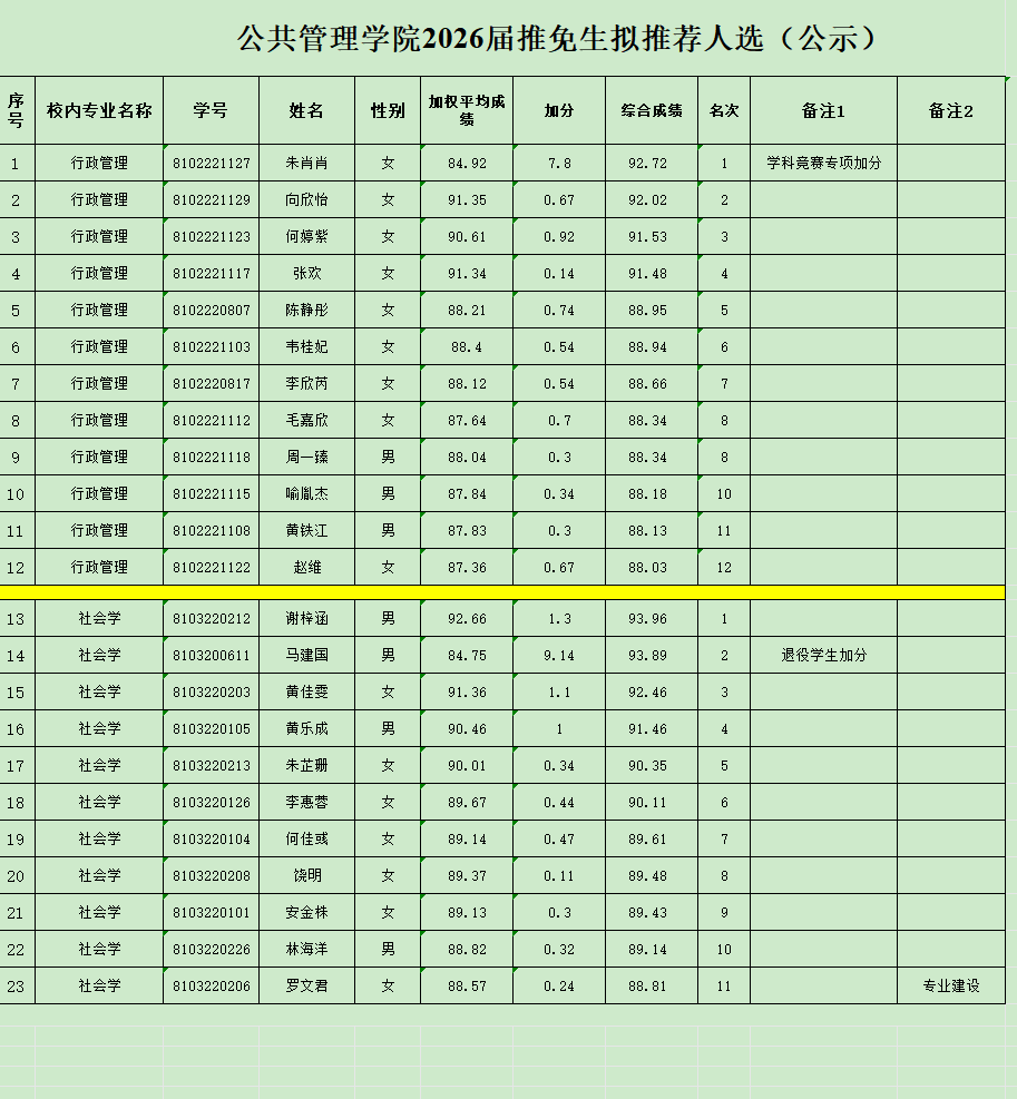 根据《诸侯快讯ok1122推荐优秀应届本科毕业生免试攻读硕士学位研究生资格的管理办法(试行)》(中大教字〔2021〕107号)、学校《关于做好2026届优秀应届本科毕业生免试攻读硕士学位研究生推荐工作的通知》和《ok1122诸侯快讯关于推荐2026届优秀应届本科毕业生免试攻读硕士学位研究生的实施细则》等文件精神,经学生自愿报名、资格筛选、政治审查、专家审核等程序,现将我院2026届推免生拟推荐人选公示如下: