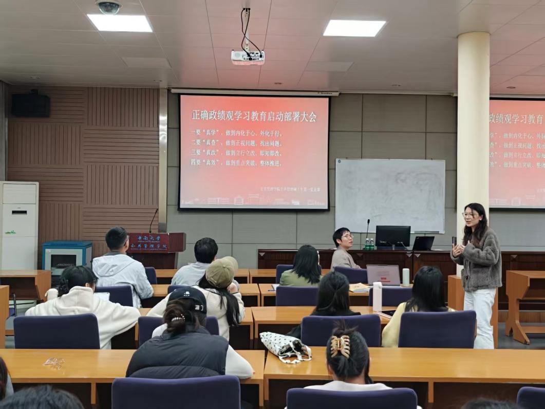 此次会议筹备周密、流程严谨、务实高效,将党建工作与专业发展深度融合开展实践探索,为支部建设提供了有益参考。雷望红书记在总结中强调,青年党员要锚定学科特色、扎根实践,在学思践悟中锤炼党性修养、树立正确价值导向。黄蓉同志提出,唯有持续对标对表、深刻检视整改、不断自我提升,才能进一步切实增强基层党组织的凝聚力和战斗力。公共管理硕士生第一党支部将针对查摆问题建立整改清单、明确整改时限、压实整改责任,切实把会议成果转化为履职尽责、推动工作的实际行动,以党建引领学科发展、服务国家建设。