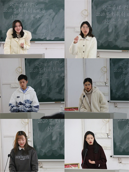 会议伊始,主持人致开场辞,并介绍此次分享会的主讲人,他们分别是行管1702班肖云清、社会1801班曾雨童、哲学1801班刘涛、社会1701班楚恬思、社会1701班李紫茹和劳保1702班罗佩玲。主讲人们都具有非常丰富的创新创业实践经验,曾获国家级或省级立项。他们立足自身项目展开经验分享,细致讲解了项目开展的步骤,分享项目开展中遇到的困难和解决措施,并以此为基础提出了相应建议,此外,主讲人们也分享了项目实践过程中自己的心得与收获。
