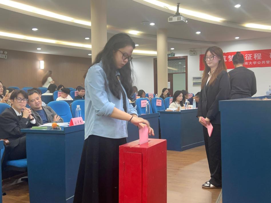 最终,大会在充满青春激情与昂扬斗志的团歌声中胜利闭幕。此次大会组织周密、程序规范、成果丰硕,是一次承前启后、继往开来的重要会议。新征程呼唤新担当,新使命激励新作为。新一届研究生会将在学院党委的正确领导和团委的精心指导下,恪守服务宗旨,锐意改革创新,团结带领广大公管学子坚定理想信念,练就过硬本领,勇担时代重任,在强国建设、民族复兴的伟大征程中挺膺担当,书写无愧于时代的青春华章!