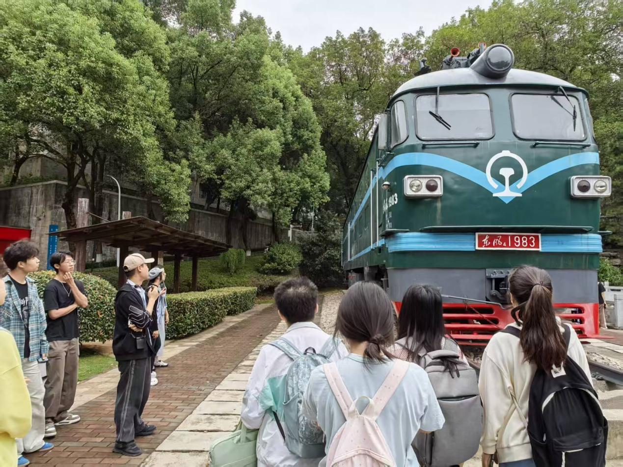 最后,全体成员来到铁路园参观陈列的三台机车。讲解员结合每台机车的历史背景,讲述了不同时期我国铁路技术的发展困境与突破历程,同学们在聆听历史故事的过程中,了解到轨道交通装备的发展脉络,对科技自立自强的重要性有了更具象的理解。