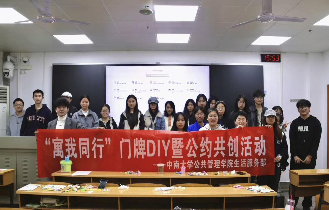 11月9日下午2时,我院“寓我同行”寝室门牌DIY暨公约共创活动在天心校区世纪楼A203顺利举行。本次活动吸引了16组寝室参加,旨在丰富学生寝室文化生活,激发同学们的创造与协作精神。