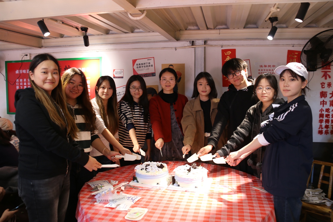 游戏环节结束后,梁慧老师为全体成员切分蛋糕,并与大家合影留念,现场洋溢着温馨而欢乐的气氛。