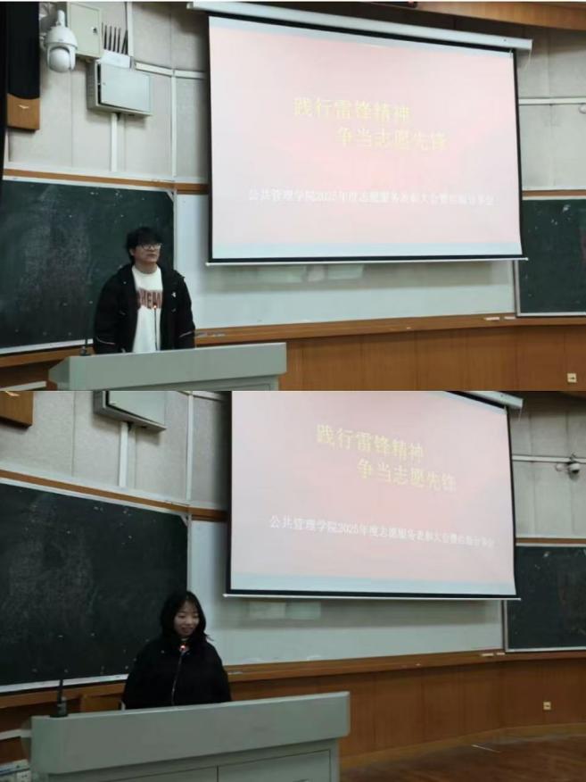 表彰结束后,优秀志愿者代表王松阳、唐思怡依次分享志愿经验。王松阳结合自身参与特殊群体关爱、社区服务等志愿活动的经历,讲述了志愿过程中的收获与成长,强调了耐心、细心与同理心在志愿服务中的重要意义;唐思怡从活动组织、志愿规划等角度分享实践技巧,鼓励大家主动挖掘志愿需求,在服务中实现自我价值。两位代表的分享内容实在、贴合实际,为同学们提供了可参考的志愿经验。