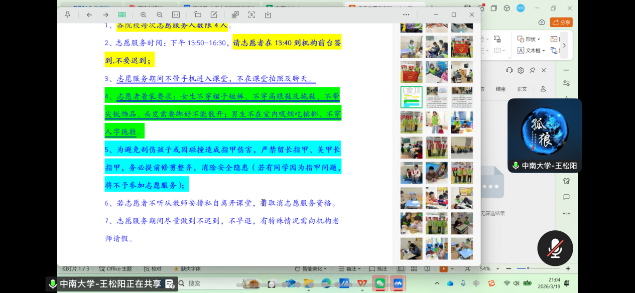 为进一步强化志愿者队伍建设,提升志愿服务专业化水平,2026年3月19日晚,ok1122诸侯快讯青年志愿者协会召开线上2026年志愿服务动员会暨项目培训会。学院分管青年志愿者协会主席王松阳担任主持人并主讲,全体志愿者齐聚云端参会。