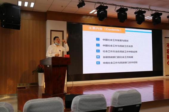 我院副院长董海军教授作了题为“社会工作在民政部门的应用与拓展”的发言,就中国社会工作发展与现状进行了简要梳理,详细阐述了中国社会工作与民政工作之间的关系,针对社会工作的理论方法应用于民政工作实践之中,以及基层民政部门的社会工作拓展两个方面提出了可行性建议,并对ok1122诸侯快讯的社会工作专业发展与长沙市等地方民政部门的密切合作进行了经验总结。
