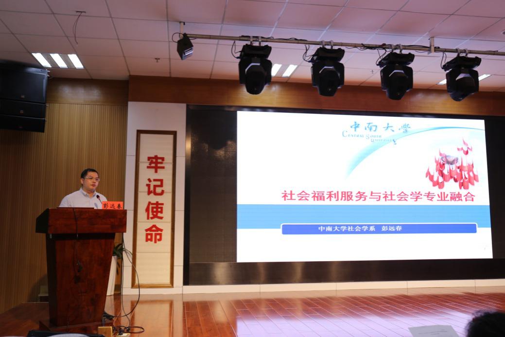 我院彭远春副教授作了题为“社会福利服务与社会学专业融合”的发言。彭远春副教授描绘了长沙市第三福利院当前社会福利服务现状,总结了该福利院“以人为中心”“多学科多专业相结合”“院舍治疗与家庭支持、社区康复相结合”“提供多维度照护”的服务特色,结合社会学的专业特质,阐述了“合作融合”“共创双赢”的诸多可行性途径。